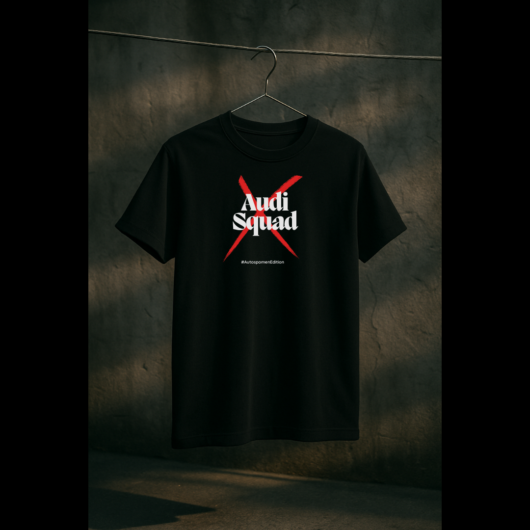 Минималистичен преден принт „Audi Squad X“, който ясно показва позиция.