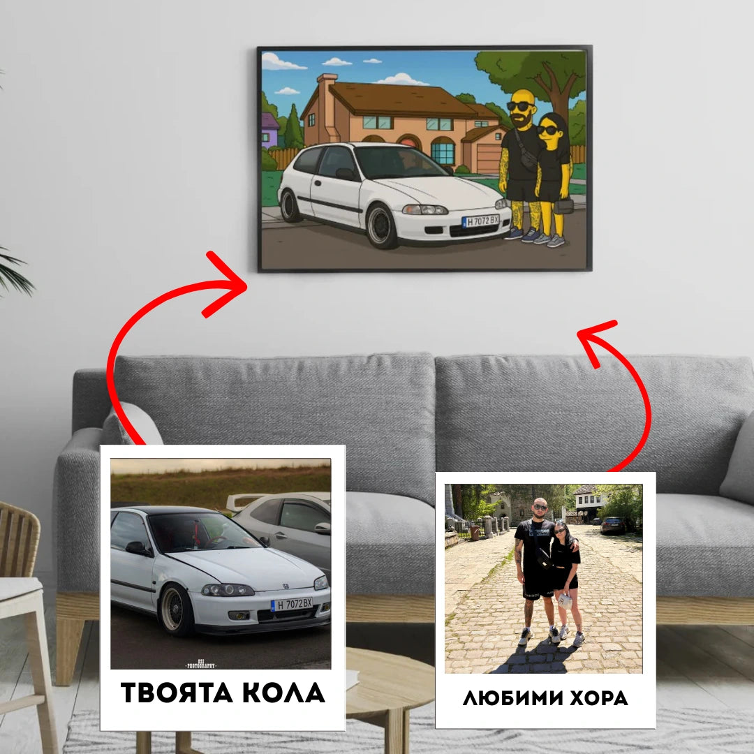 Картина "Симпсън Стил" – Ти и Твоята Кола