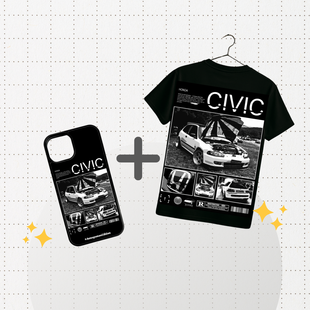 Тениска + Кейс по Твоя Кола (Черно-бял дизайн🖤 ) Персонализиран Комплект